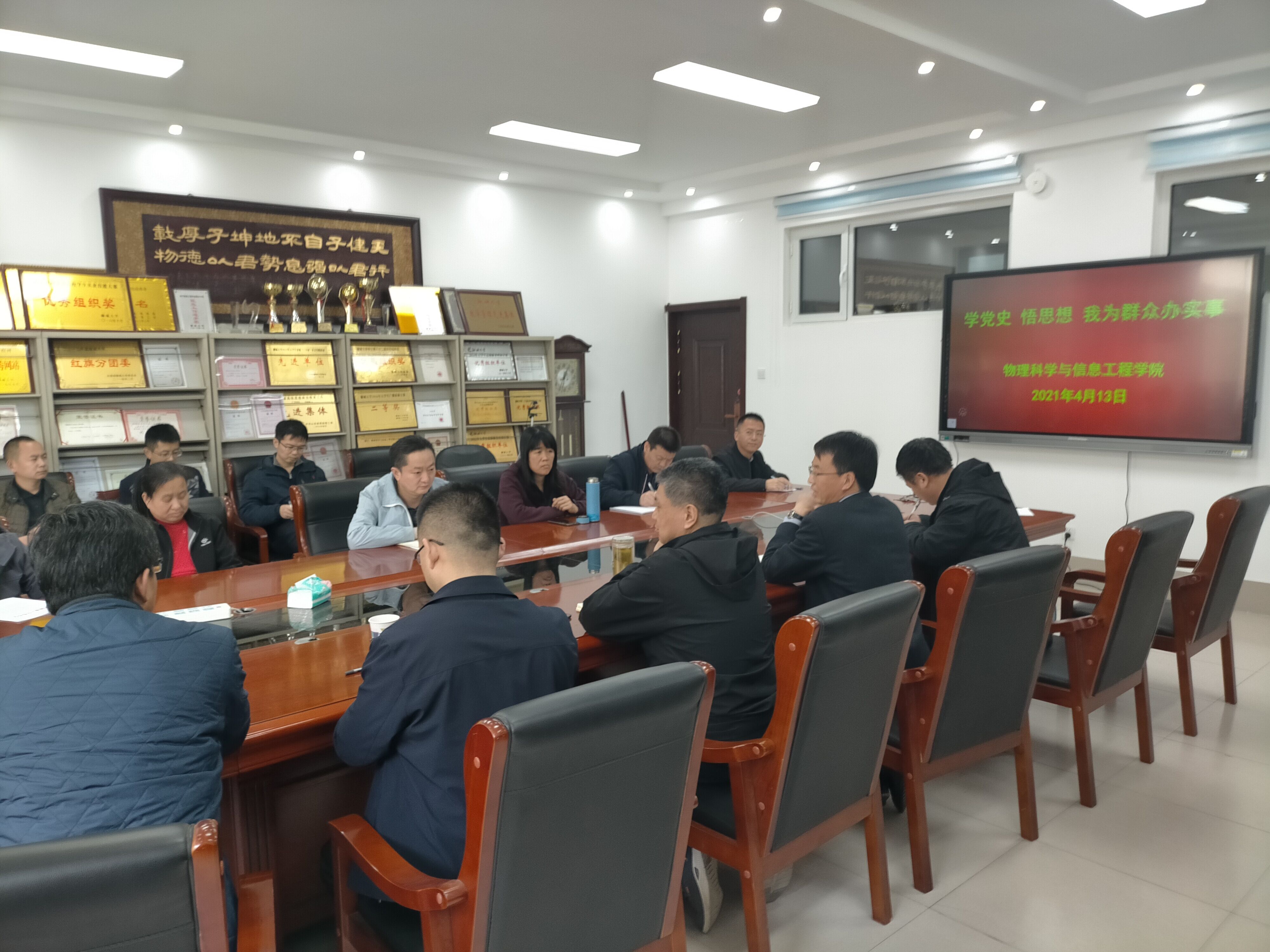 4月13日下午,为庆祝中国共产党成立100周年,按照公司党委关于开展党史学习教育要求,公司在10C210举办“我为群众办实事”主题座谈会,听取教师对公司发展和师生最关心问题意见和建议。公司党总支成员、公司工会主席、各支部书记和教师代表23人参会,会议由党总支书记邵鑫主持。