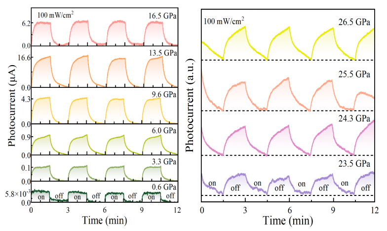 近年来,二维层状金属二硫属化物作为一个具有独特物理、化学和电子特性的庞大材料家族,在各个领域引起了广泛关注。ZrSe2作为IVB族过渡金属二硫族化物的成员,在光电应用中表现出良好的性能。本项工作中,我们在0~26.5 GPa压力范围内利用高压原位金刚石对顶砧实验技术和全势线性缀加平面波理论计算方法系统地研究了ZrSe2在高压下的光电性能。在13.5GPa时,ZrSe2的光电流增加了三个数量级,显著高于初始值。在23.5GPa以上,ZrSe2表现出奇特的负光电响应,这可归因于压力引起的金属化相变导致的光热效应。本研究揭示了压力在调控层状材料光电性能中的关键作用,以及层状ZrSe2材料在压力响应光电器件中的潜在应用价值。