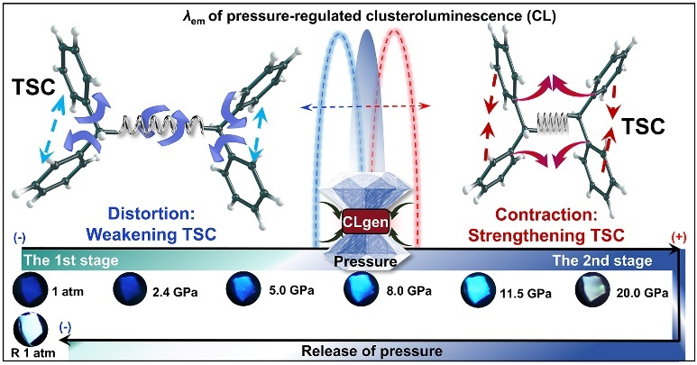 1. 在一些非共轭分子中,电子云能够通过非共价键的空间离域重叠,实现簇集状态下的可见光发射。这种非传统的发光性质,被定义为簇发光。团队通过高压极端环境精确调控系列四苯基烷烃分子的空间共轭效应,引起簇发光的不同响应,实现发光颜色的有效调节及发光强度显著增强。研究聚焦空间共轭作用机制,揭示材料结构-性质关系,明确调控规律,识别影响空间共轭与簇发光响应的关键结构因素。利用压力工程成功解锁弱作用基发光材料的发光潜能,为构建高效的弱作用基发光材料提供了新的策略。相关研究成果以“Pressure-Engineered Through-Space Conjugation for Precise Control of Clusteroluminescence(基于压力工程改变空间共轭以实现簇发光的精准调控)”为题,发表在期刊《Angewandte Chemie International Edition》(《德国应用化学》,中科院一区,影响因子16.1)上。2023级硕士研究生王亚云为论文第一作者,beats365唯一官网入口官网王凯教授、李茜教授与浙江大学张浩可教授为共同通讯作者,beats365唯一官网入口官网为第一署名单位。