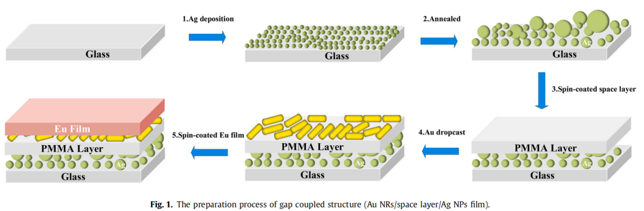 稀土材料因其丰富的能级和4f电子跃迁特性,其发光具有窄带、长寿命、色度可调和光学稳定性好等优良特性,在现代光通信、光电探测、光传感和光信息存储等领域有着广泛的应用。然而,由于稀土离子光学激发和受激发射截面都非常小,提高稀土离子的发光效率,改善稀土材料的发光性能成为了一个重要的课题。本工作中,课题组设计提出了金纳米棒/间隔层/银膜的等离激元间隙耦合结构,并利用该结构显著提升了稀土配合物Eu(dbm)3phen的发光性能。研究发现,与其他等离激元基底相比,金纳米棒/间隔层/银膜的等离激元间隙耦合结构显著提升了稀土Eu掺杂薄膜的发光性能,同时对其发光寿命也可实现较大范围内的调控。通过利用FDTD方法理论模拟等离激元间隙耦合结构的局域电场分布表明,间隙耦合结构中的银纳米颗粒薄膜作为衬底主要用于局域场增强,间隔层作为中间层调整距离以减小猝灭效应,金纳米棒则主要利用其Purcell效应调控稀土Eu离子的辐射过程。这一研究结果有助于深入理解等离激元对材料发光调控的物理机制,并为等离激元调控稀土材料或其他荧光材料发光性能提供了新思路。