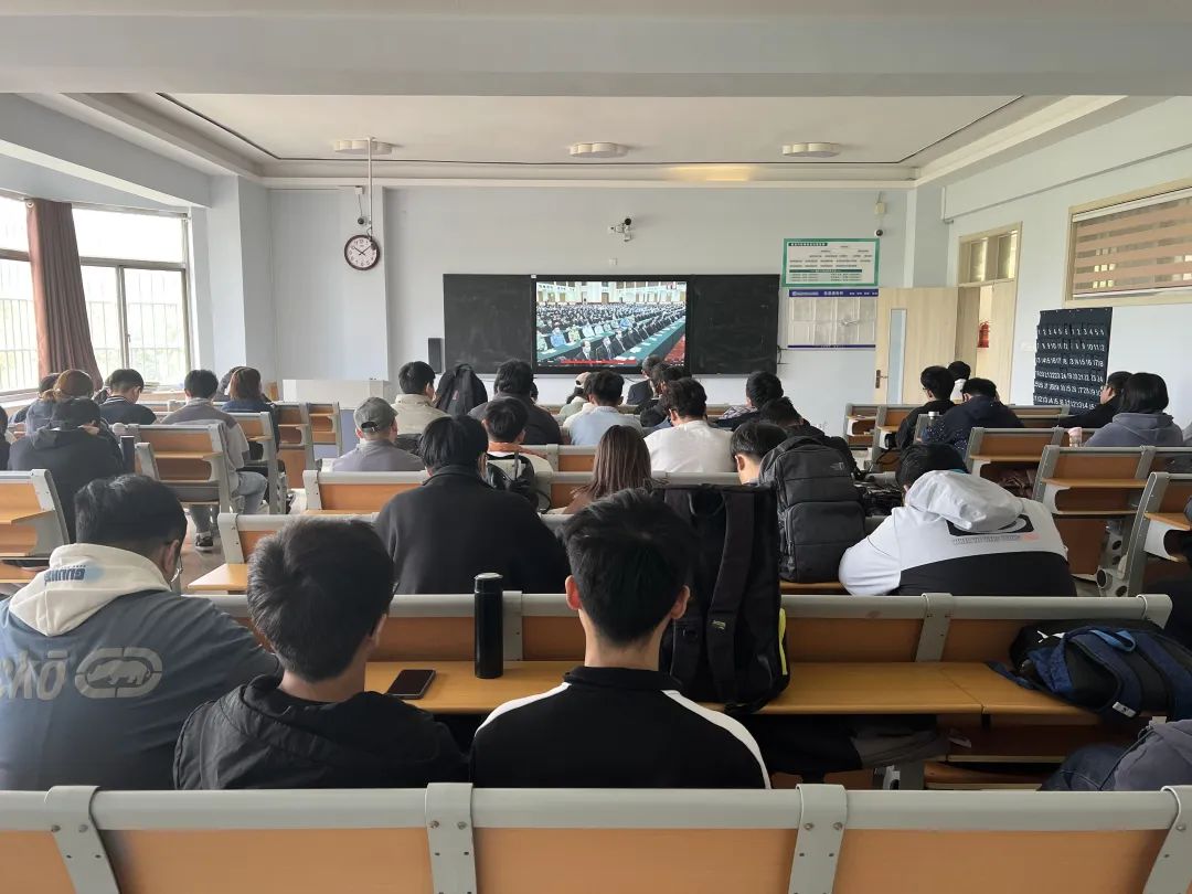 观看直播会议中,教室秩序井然,在场同学聚精会神收看,记录习近平总书记重要讲话要点,并在直播结束后积极讨论,反响热烈。观看会议直播后,团委书记赵海军指出习近平总书记的重要讲话,全面回顾了中国共产主义青年团在党领导下的百年奋斗光辉历程,深刻回答了新时代建设什么样的共青团、怎样建设共青团等方向性、全局性、战略性问题,为我们做好新时代共青团和青年工作提供了根本遵循。