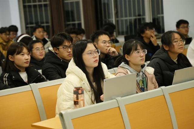 在学习过程中,主讲人借助PPT,用“九个数字”对党的二十大精神进行了详细讲解,让同学们深入领会其中蕴含的重要思想、重要观点、重大战略、重大举措,推进党的二十大精神入脑入心。主讲人指出党的二十大是在全党全国各族人民迈上全面建设社会主义现代化国家新征程、向第二个百年奋斗目标进军的关键时刻召开的一次十分重要的大会,是一次高举旗帜、凝聚力量、团结奋进的大会。党的二十大报告描绘了全面建设社会主义现代化国家、全面推进中华民族伟大复兴的宏伟蓝图,为新时代新征程党和国家事业发展、实现第二个百年奋斗目标指明了前进方向、确立了行动指南。青年人生逢其时,应积极汲取奋进力量,努力成长为实现中华民族伟大复兴的先锋力量。