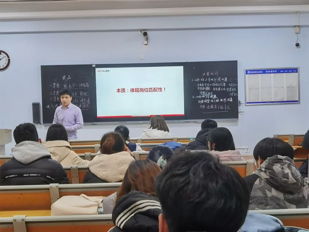 此次活动特别邀请了中公教育的老师为我们进行培训讲解。此次活动采取签到制度。活动开始前,由工作人员布置会场,在入口处引导前来参加活动的员工入座,为同学们解答相关问题。