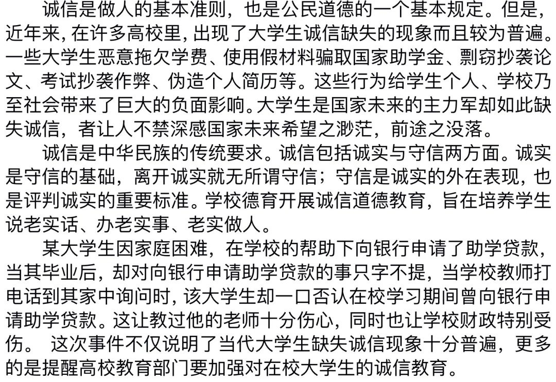 本次诚信调研活动共收集38份作品,使同学们充分了解目前老员工诚信的总体状况。同时,通过展开交流、讨论以及与被调查人员进行沟通,有效的培养了同学们合作学习的品质和自主调研的能力,为进一步营造beats365唯一官网入口官网重信用守信用的良好氛围奠定坚实基础。
