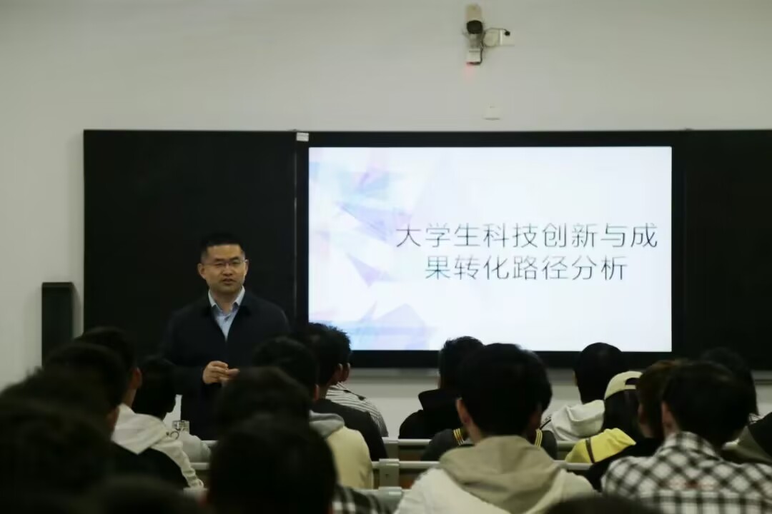 随后田存伟着重向同学们讲解了科技成果的转化,做到使自己的科技创新作品能够真正的为社会创造价值。最后田存伟讲述了科技创新的重要性和意义,他希望同学们能时时刻刻有科技创新的思维。通过结合自身多年的双创教育工作经验,田存伟向同学们提出通过竞赛的形式体现自己专业水平的建议,他鼓励同学们扬长避短,将自己擅长的领域发扬光大。