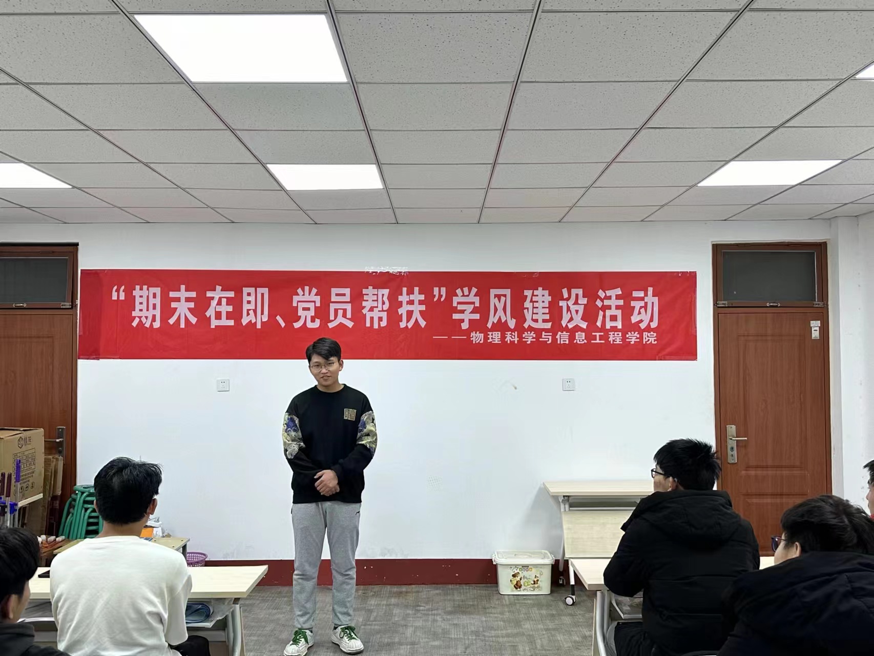 为了在期末考试来临之际更好地帮助学习困难生提升学业,充分发挥党员的先锋模范作用,以实际行动带动学习困难员工。12月19号,通信工程系本科员工党支部学风优良队于群星23号楼2楼活动室组织进行“期末在即、党员帮扶”学风建设活动,通信工程系22级员工及21级通信工程系本科员工党支部部分党员参与本次活动。