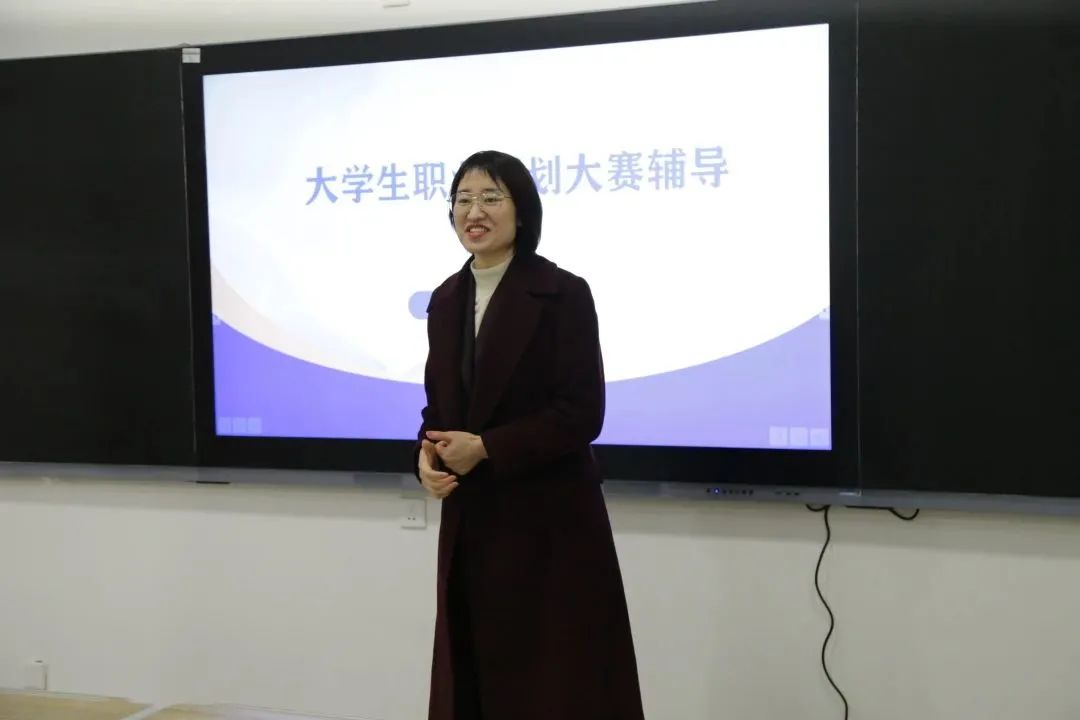 会上,陶珊珊从选拔参赛选手与项目、参赛项目的流程准备、规划书写作的重中之重以及现场展示的意义升华这四方面为同学们逐层阐述参赛要领。会议以“人”与“梦想”为切入点,提出成为优秀选手的四要素。首先要培养一个好的兴趣,兴趣不必广泛,但要具备一致性,具有较高的区分度;其次,根据自己的个性特质来配适具有特色和优势的职业目标,实现融合小我与大我的统一,在职业探索的道路上丰富成长故事,提高领悟力、感染力以及语言表达能力等综合素质水平,最后则是认可职业目标的意义价值,要求同学们具有强烈的生涯探索意愿,做到眼中有光,心中有爱。