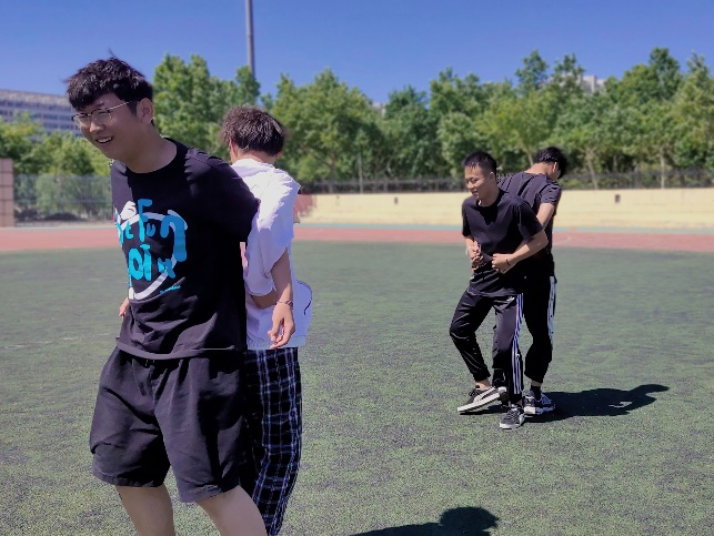 在活动开始前,同学们都做出了热身准备,积极地与组内队员进行沟通交流,讨论关于比赛项目地看法和意见,并互相鼓励。在“心心相印”比赛项目中,为了避免出出现球落地的情况,每个小组之间都提前展开了训练,并提出了适用于自己的比赛方法,使得同学们在这个项目中大放光彩。在比赛过程中同学们配合默契,展现出了主动与人合作的意识和自主创新意识,也提高了身体的灵活、协调性。比赛现场,掌声、笑声、加油声此起彼伏,充满了欢乐的气氛。本次运动会将竞技与娱乐相结合,“信任之旅”、“两人三足”等比赛项目不仅体现了团队精神,而且兼顾了趣味性和技巧性,受到了同学们的热烈欢迎。