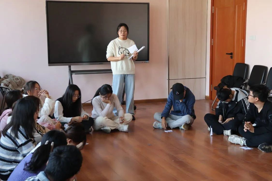 此次活动特别邀请了教育科学公司研究生学姐赵汝艳担任主讲人。活动伊始,主讲人向大家介绍了本次活动的内容及目的。第一个小游戏“滚雪球”迅速拉近了同学们的距离,让大家在轻松愉快的氛围中逐渐敞开心扉。接着,“气球万花筒”游戏让同学们在欢笑中释放压力,同时通过集体合作感受到了集体的力量。在“松鼠与大树”游戏中,同学们全神贯注,不错过每一个指令。随之,“解忧杂货铺”环节让同学们互相倾诉心声,分享自己的烦恼。最后,在轻音乐的陪伴下,同学们闭眼沉思,享受着难得的静谧。