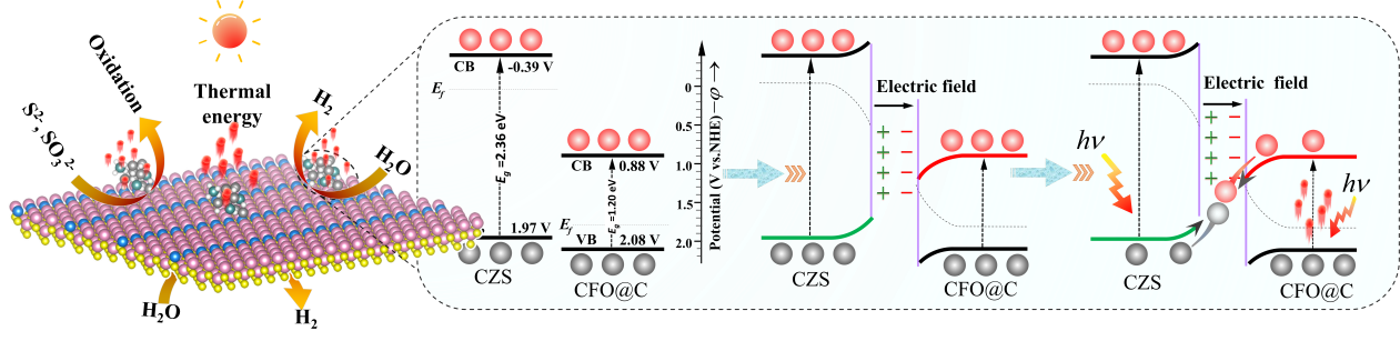 photocatalytic H2 evolution”(“合理构建的光热辅助CuFe2O4@C/ Cd0.9Zn0.1S型异质结光催化剂促进H2产生”)为题,发表于《Journal of Energy Chemistry》(《能源化学期刊》,影响因子13.1,为中科院一区Top期刊)。该论文的第一作者为公司2022级物理学专业硕士研究生张东,李恒帅和蒲锡鹏为通讯作者,beats365唯一官网入口官网为第一署名单位。