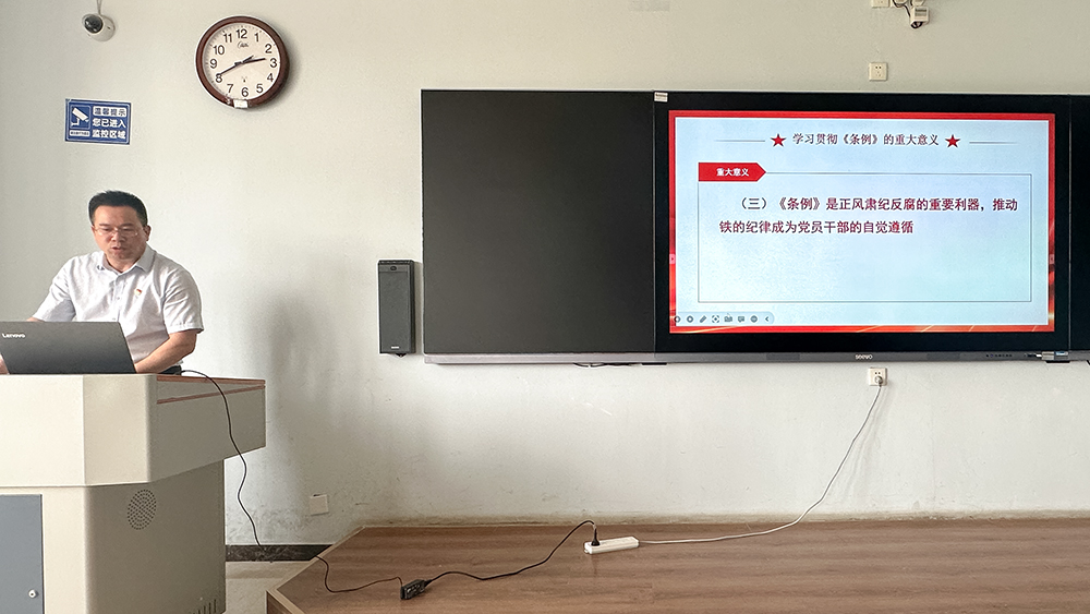 会议邀请省纪委监委驻校纪检监察组、纪委综合处处长,三级高级监察官,公司《条例》宣讲团成员肖林峻同志,对新修订的《中国共产党纪律处分条例》作了专题宣讲解读,宣讲从修订《条例》的重要意义、主旨要义、重点内容、学习贯彻要求等方面进行了详细的解读,并运用详实丰富的案例以案释纪、以案明纪,教育引导党员干部时刻树牢纪律观念,强化纪律敬畏,严格纪律约束。