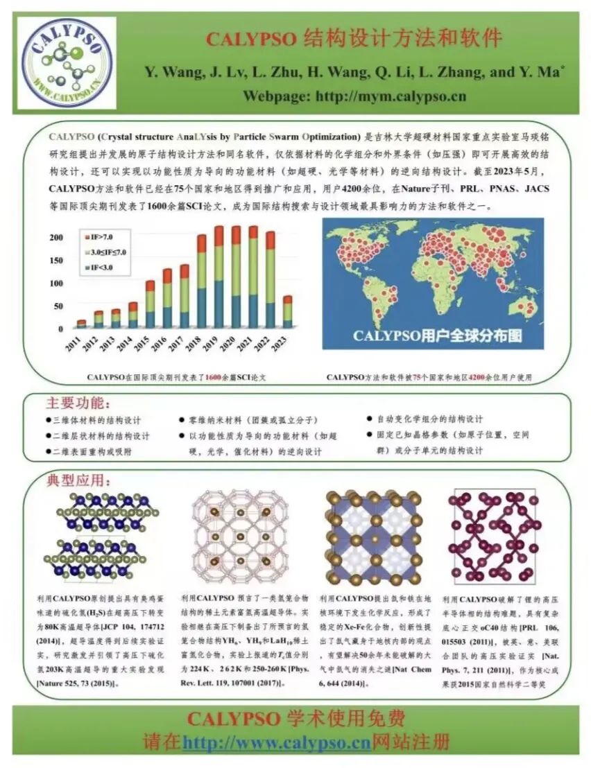 报告人简介:高朋越,吉林大学物质模拟方法与软件教育部重点实验室物理公司副教授,长期从事CALYPSO晶体结构预测方法和程序开发,参与编写了三维晶体结构预测、固-固相变过渡态结构预测、固-固界面结构预测和XRD逆向设计等功能模块,利用CALYPSO软件开展了系列高压下结构与物性的相关研究工作,在Acc.Chem.Res.、 Phys. Rev. B、Sci. Bulletin、Comput. Phys.Commun.等期刊发表SCI论文20余篇。